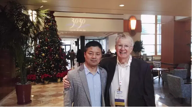 受游一中主任的特別委托,邵慶輝先生拜會了Mr Monty Johnsen和夫人,轉(zhuǎn)達了思念和衷心祝愿,贈送了代表中國傳統(tǒng)文化的中國汝瓷——如意,并共進午餐!Mr Monty Johnsen1925年4月出生于紐約州,二戰(zhàn)期間作為美國海軍少尉參加中途島戰(zhàn)役,并積極支持中國的抗日戰(zhàn)爭,曾任美國特種化學品制造者協(xié)會(CSMA)主席,是國際著名的氣霧劑權(quán)威,出版《The Aerosol Handbook:Formulation,Technology﹠Marketing》專著,并和游一中主任一起出版該書的中文版,該書對全球,包括中國的氣霧劑工業(yè)的發(fā)展起到了指引作用。Mr Monty Johnsen雖已年逾九旬,但是仍然精神矍鑠,并且連續(xù)參加了多場論壇并發(fā)表演講!
