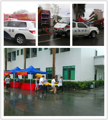6月28日,朱村街道辦組織應急辦、安監局、環保局及公安消防中隊等多部門聯合在賽邦金屬包裝股份有限公司(總部)開展消防應急演練,旨在增強轄區突發安全生產事故的戰斗應對能力,最大限度地避免人員傷亡和經濟損失,保障人民群眾生命財產安全。當天的天氣情況十分不穩定,隨時會下暴雨,這更是考驗我們的應急處理能力。
